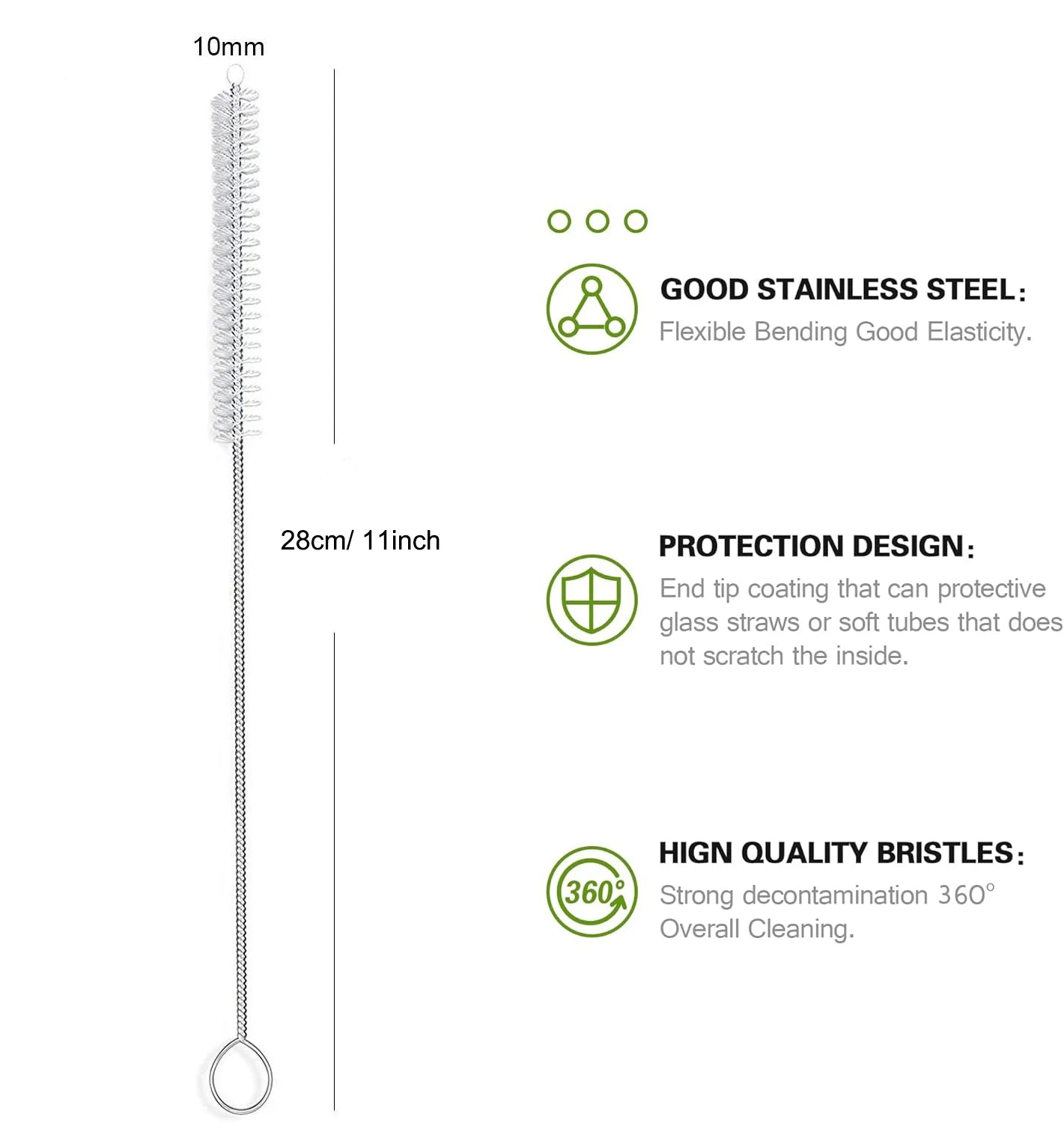 Safe material - Our Long straw cleaning brushes Made of top 18-8 food grade 304 stainless steel wire. BPA free, odorless, reusable, durable.You can feel free to buy it with full confidence.